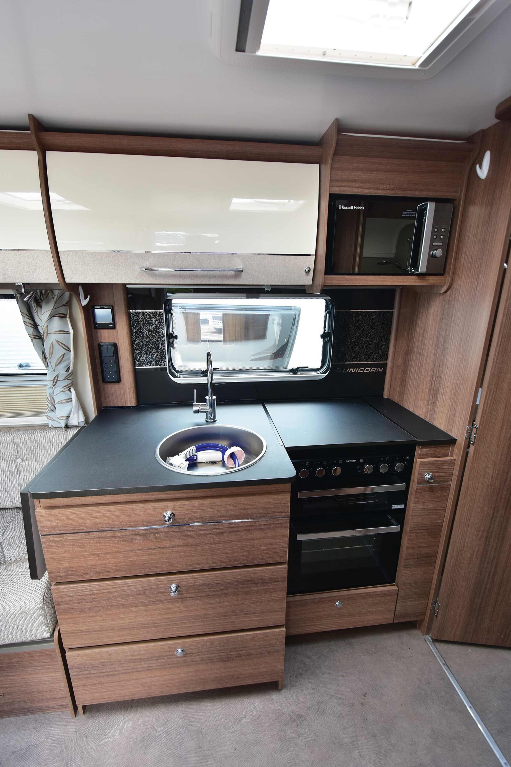 Alternatively, you could consider an older Unicorn, such as the 2012 Bailey Unicorn Cabrera. It’s a rear island bed tourer which came with an excellent spec when released.