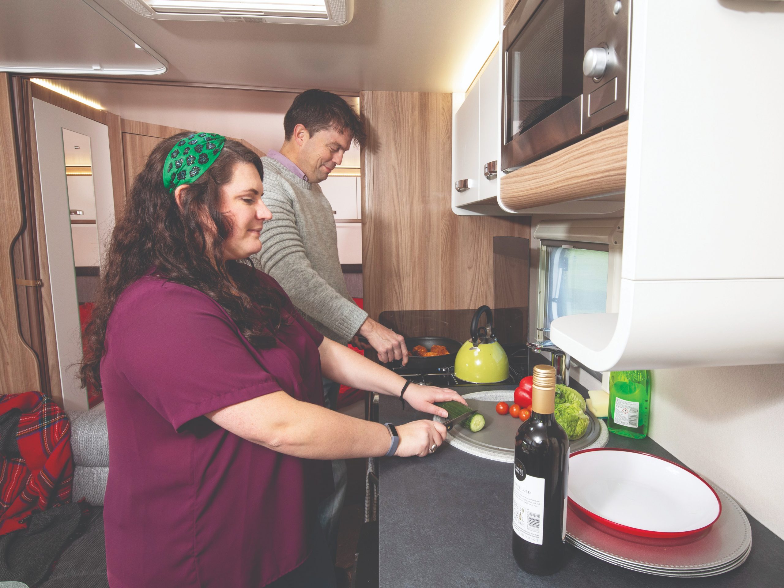 As part of the Diamond Pack, our model also had a microwave, but this doesn’t take up too much of the storage space. The two remaining overhead lockers include crockery and mug racks.